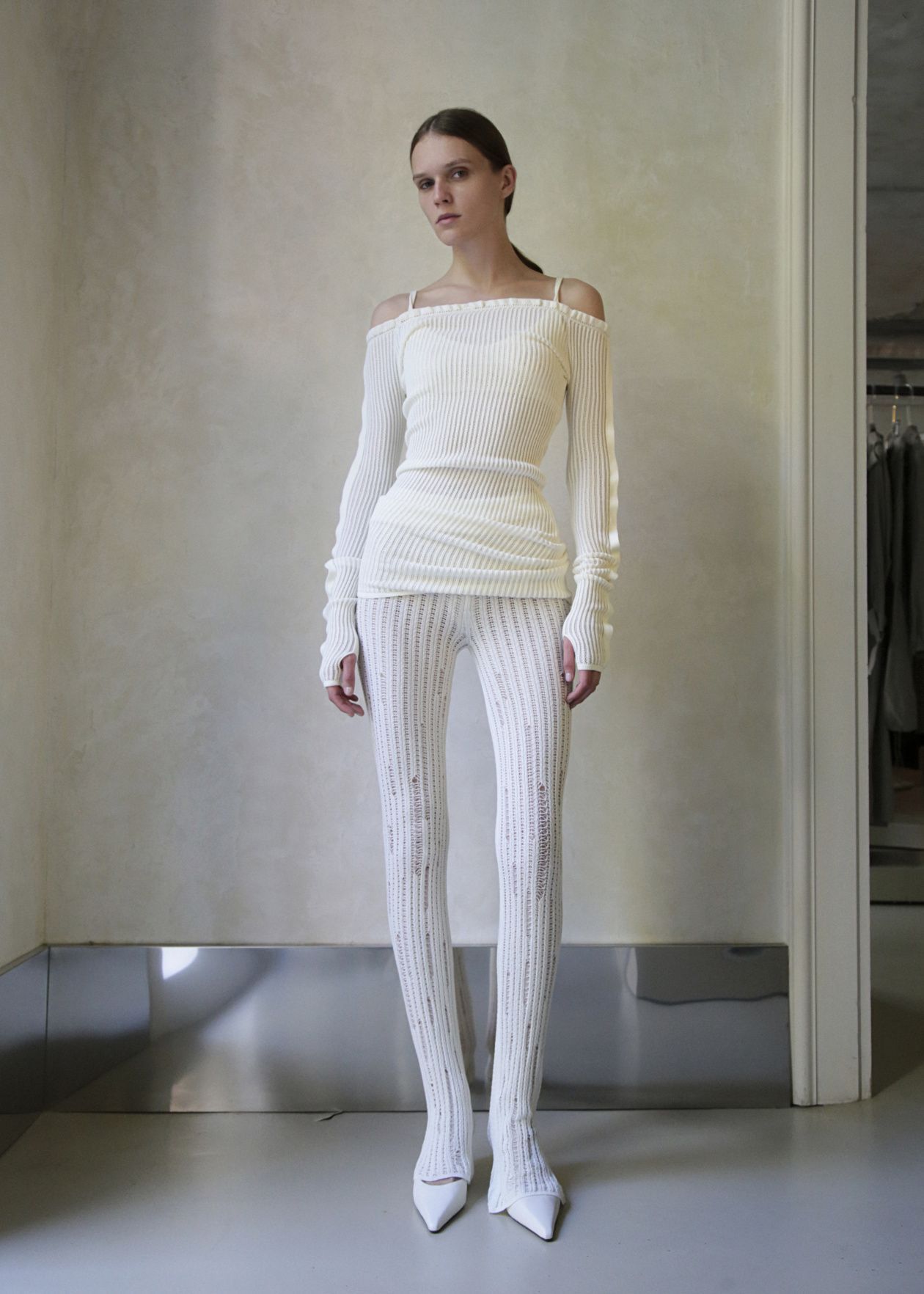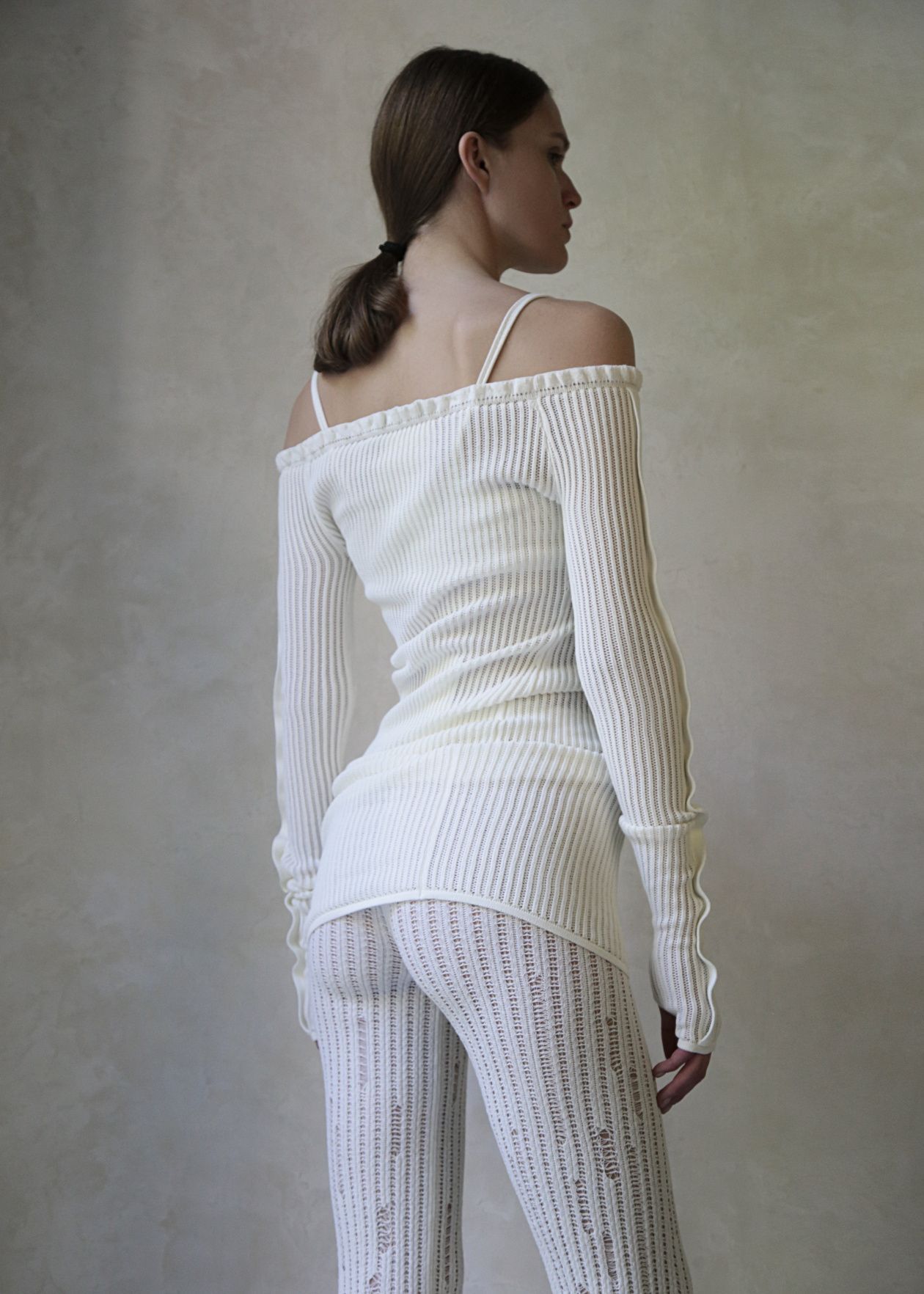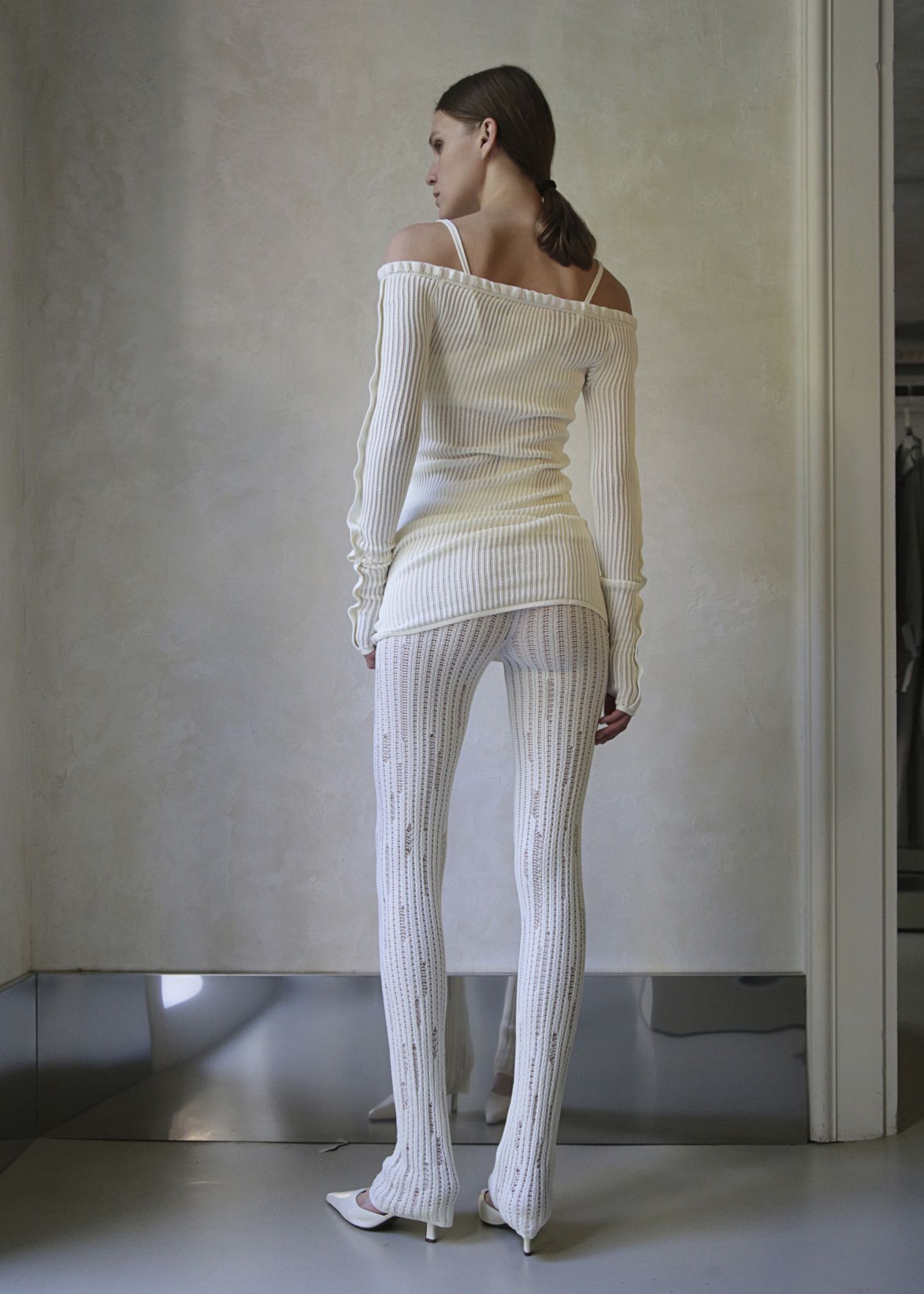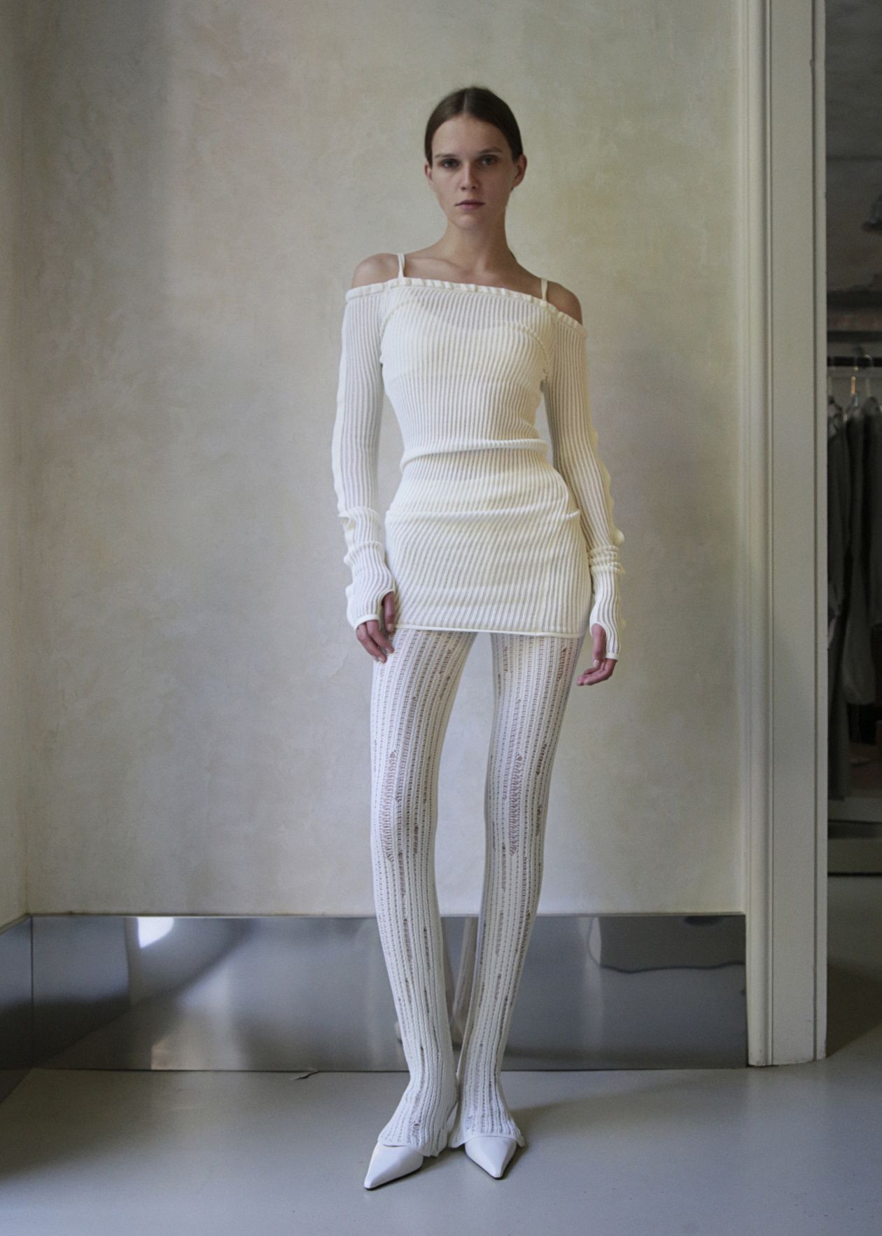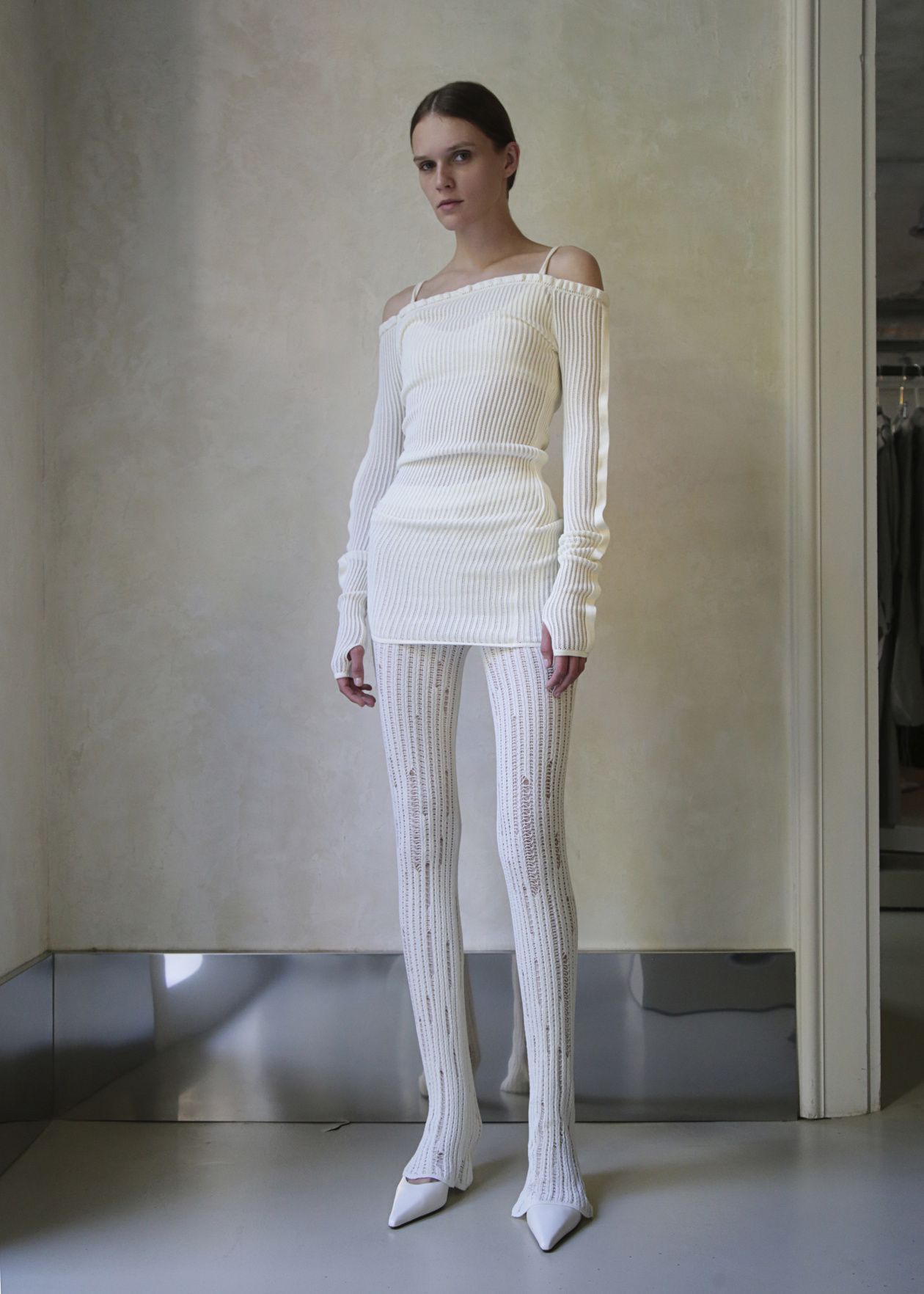 Mini length dress made of high-quality Italian knitted lace, complete with bodice.Composition: 91% Viscose, 9% Elastane