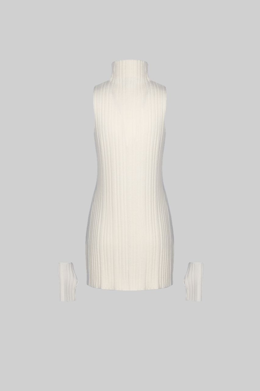 Mini length dress with mitt gloves and a stand-up collar made of soft premium merino wool.Composition: 100% merino wool