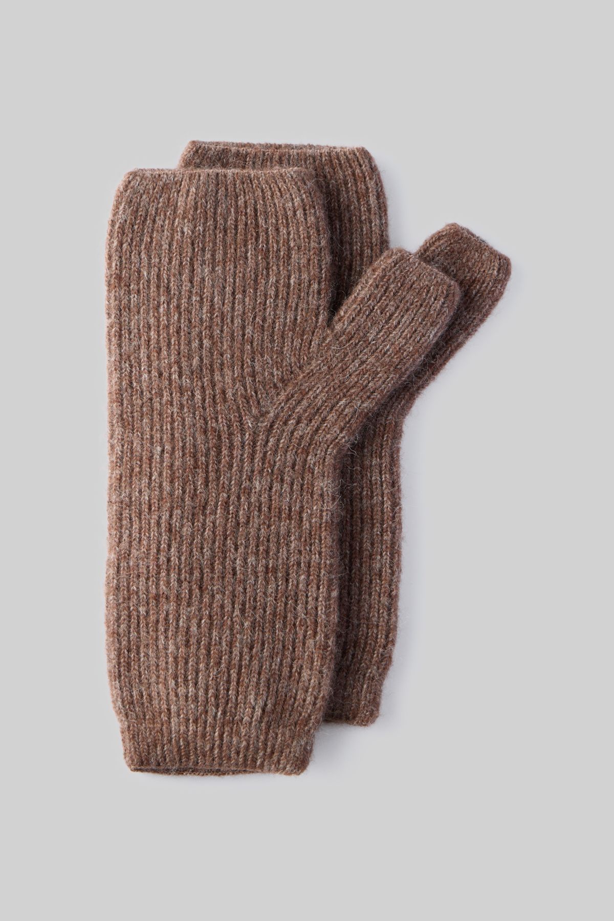 Seamless mittens made of alpaca wool with an anatomically shaped thumb. The edges are treated with an elastic band. The main fabric is a warm and soft knit. The product is elastic and soft, and it fits the shape of the hand well.
