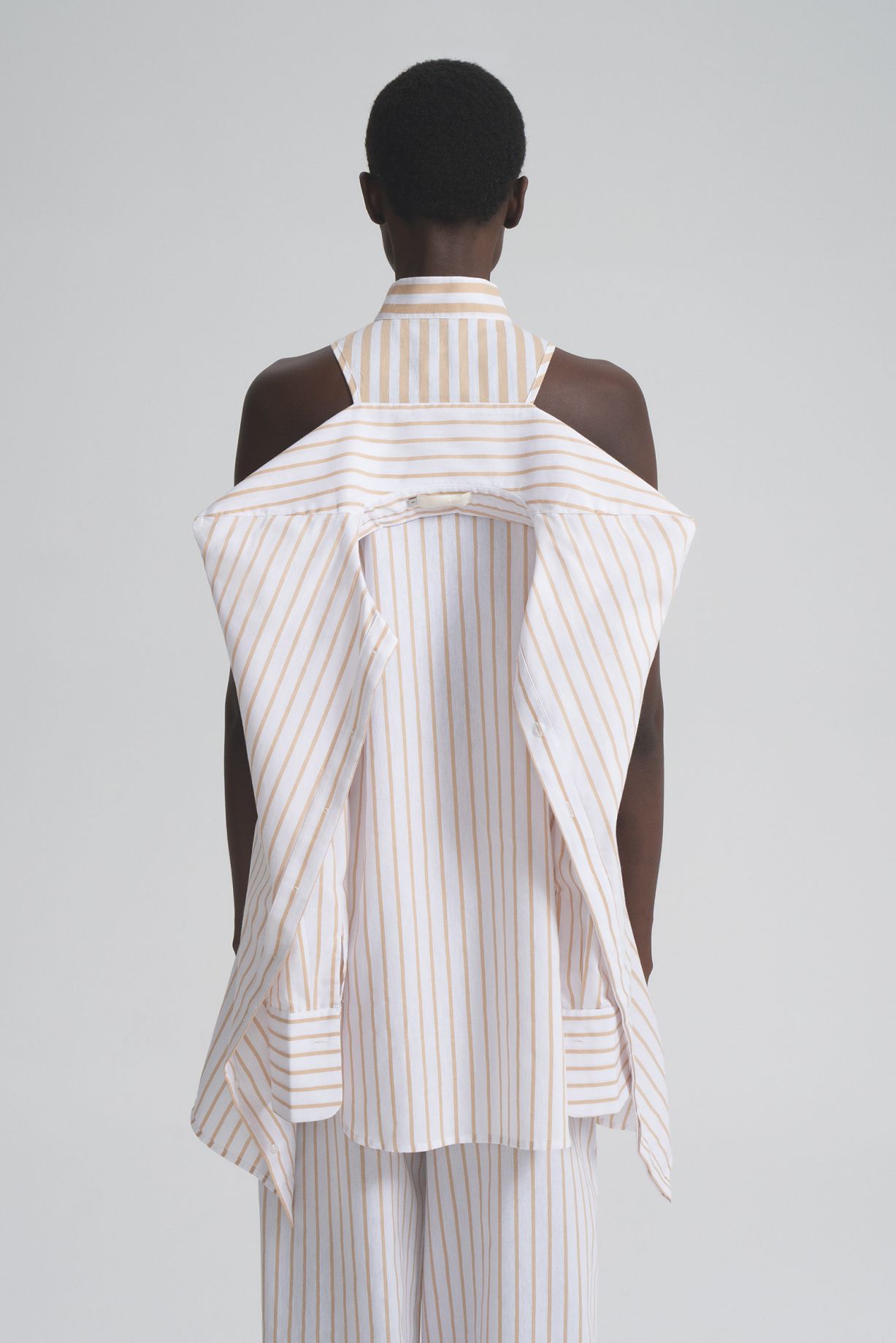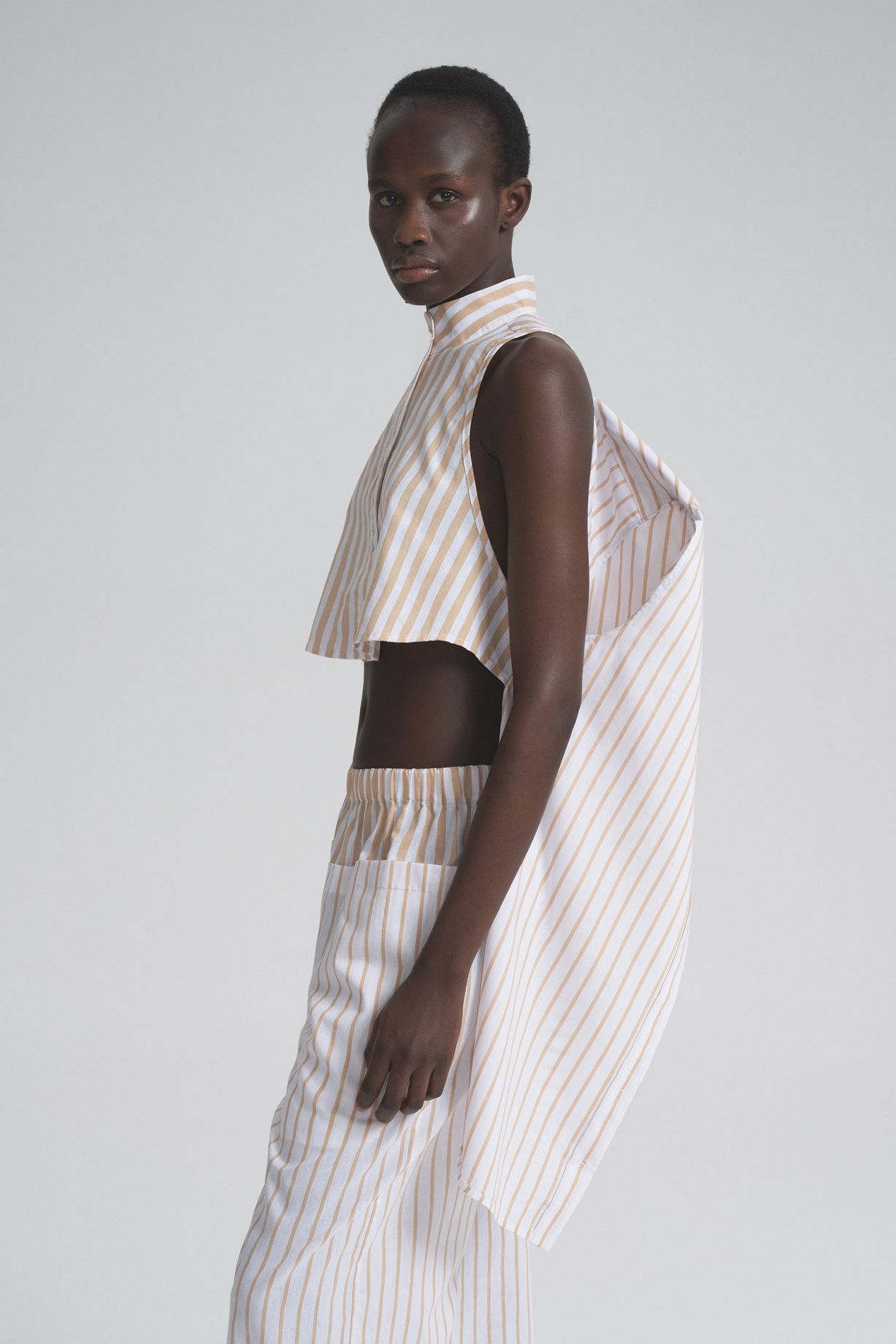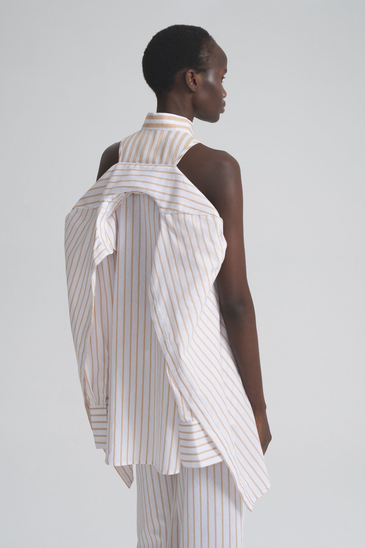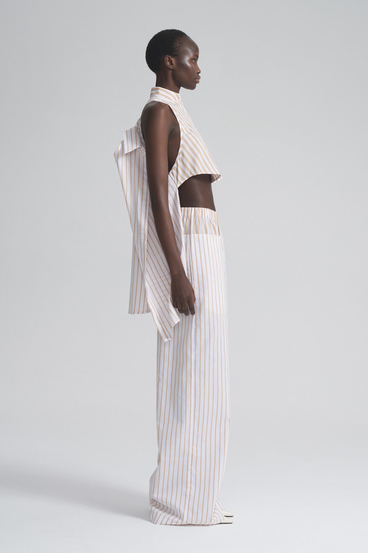 A pajama suit with a unique shirt cut - you can choose a convenient styling option, trousers with a contrasting belt.Composition: 90% cotton, 10% rayon
