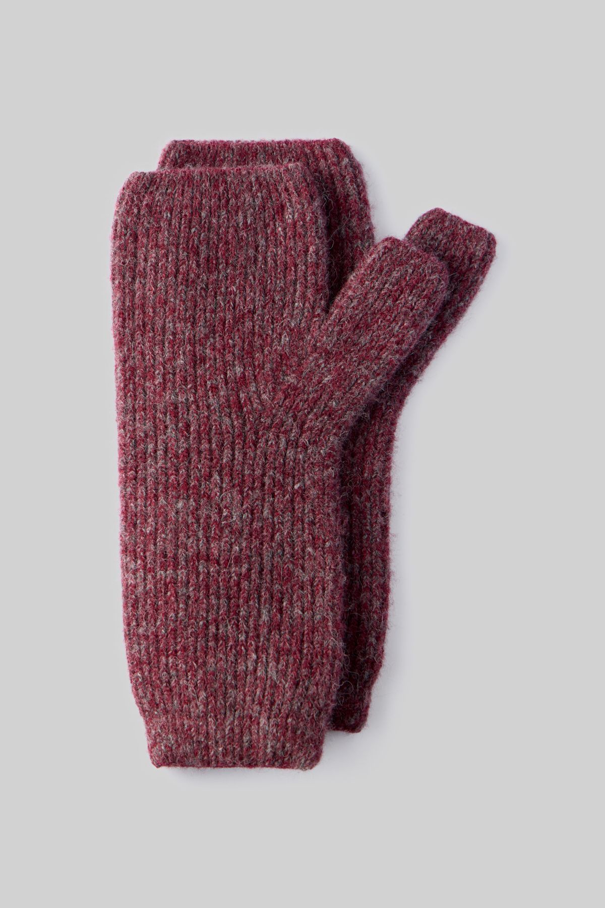 - Agatha's mittens made of burgundy-colored alpaca wool