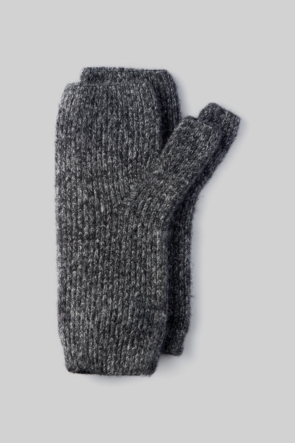 - Agatha's mittens made of graphite-colored alpaca wool