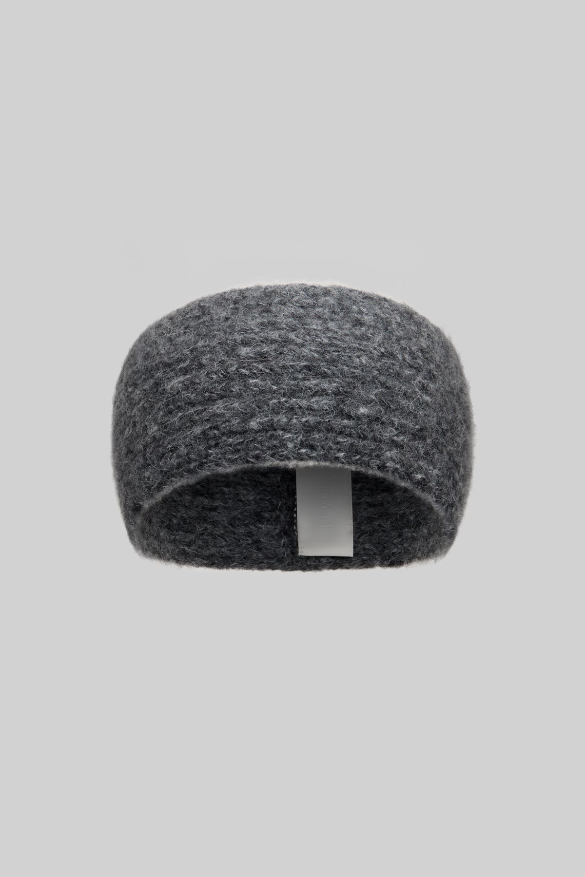 - Agatha's headband made of graphite-colored alpaca wool