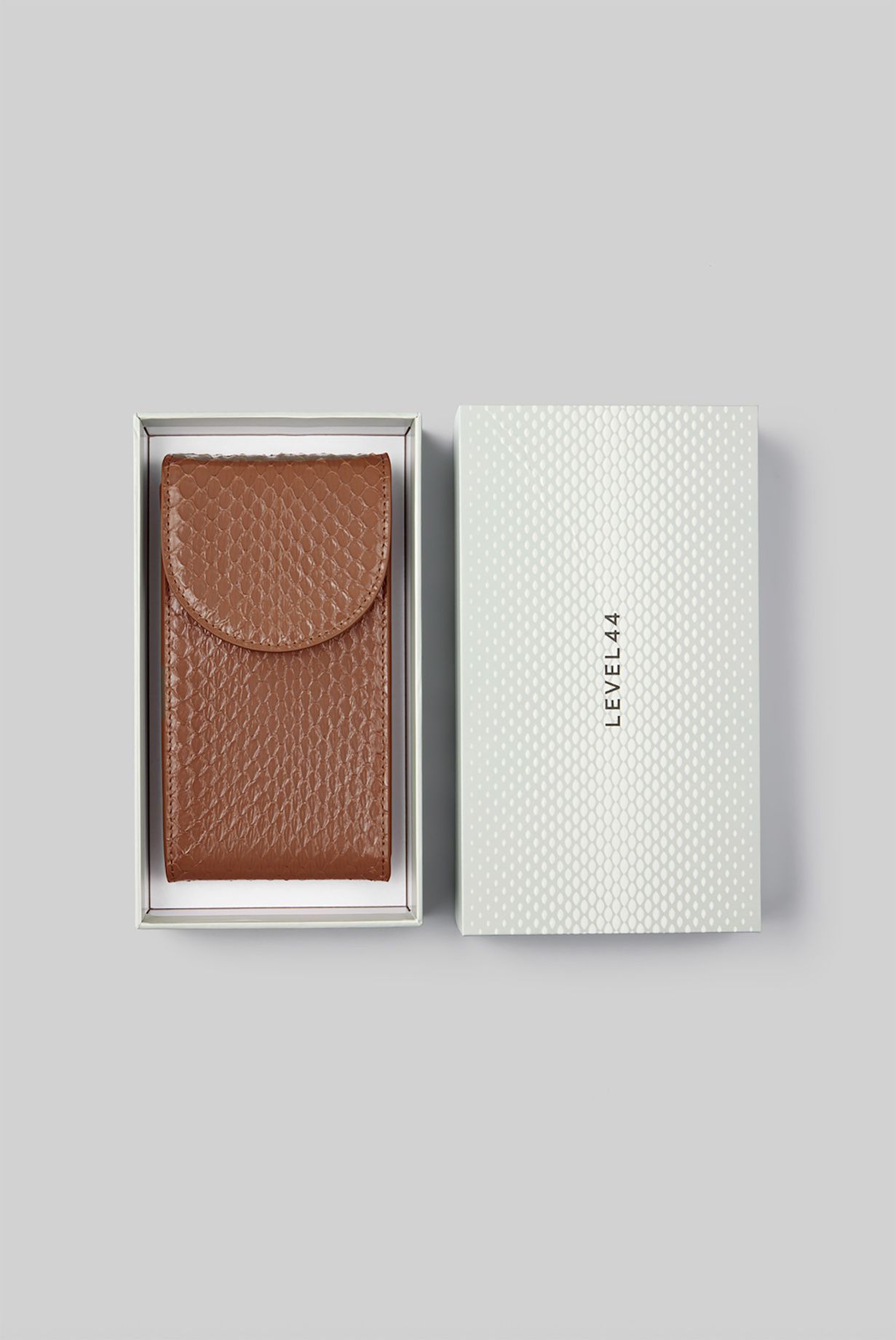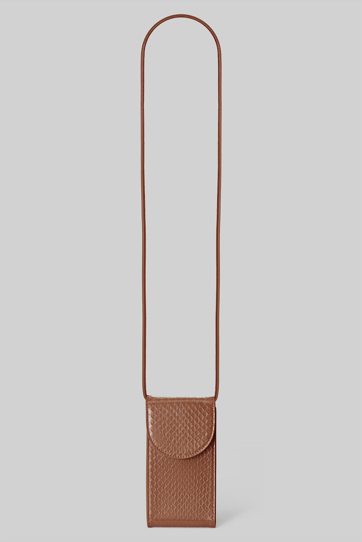 This bag is crafted from genuine, glossy python leather. Its unique scale pattern makes it a one-of-a-kind accessory. This bag is a great solution for carrying your phone and cards.
