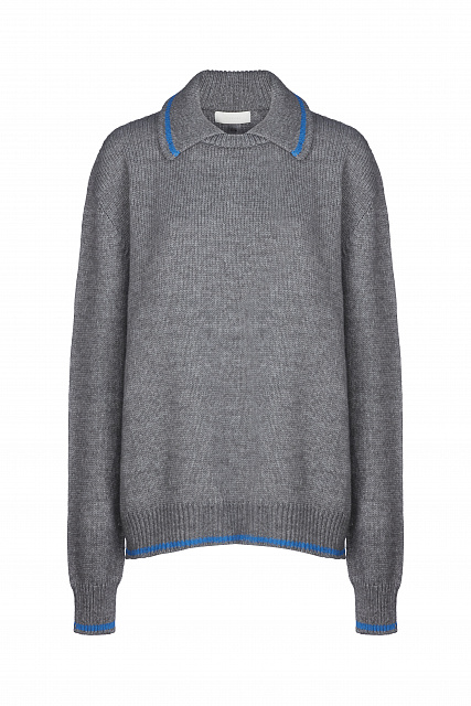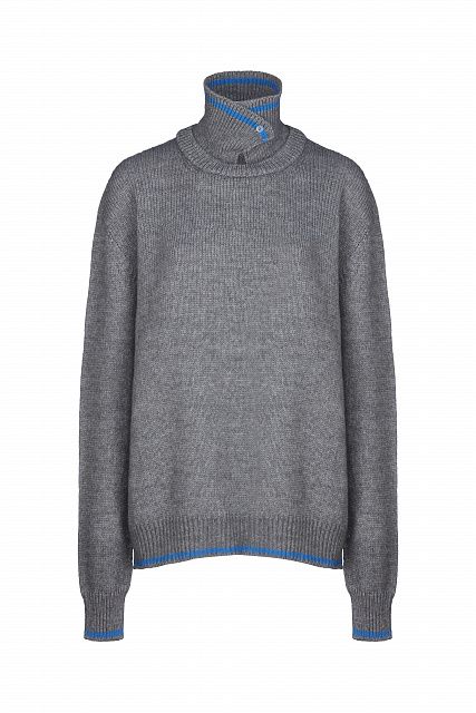 Straight and loose, it resembles a sweatshirt, but forms a neater and more laconic silhouette. Turn-down collar, which can be used as a stand-up collar and fixed with an inconspicuous button. We used Italian knitwear to create it.Composition: 50% Australian merino wool, 30% alpaca, 20% viscose