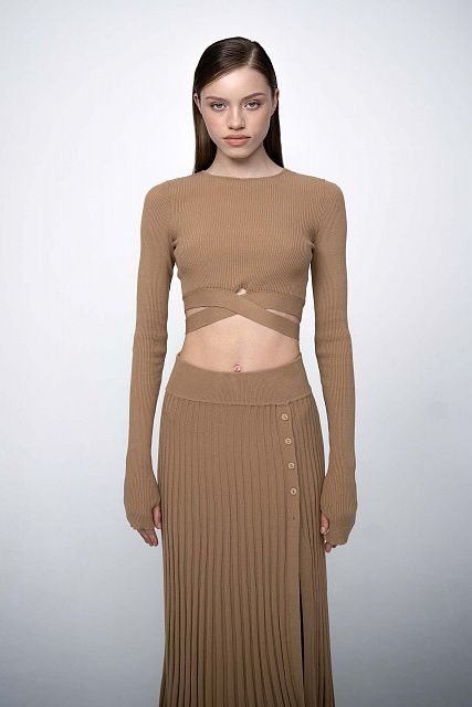 Jersey top with cross ribbon strings.Composition: 91% Viscose, 9% elastane