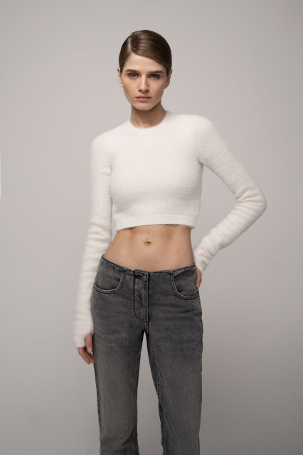 A fluffy top with sleeves made of Italian jersey will become a stylish and cozy addition to your wardrobe. Made of high-quality material, it provides softness, drape and durability. Viscose gives the top softness and comfort, and nylon adds strength and elasticity. Ideal for everyday walks and evening events, creating a harmonious and complete look.Composition: 50% Viscose, 50% Nylon