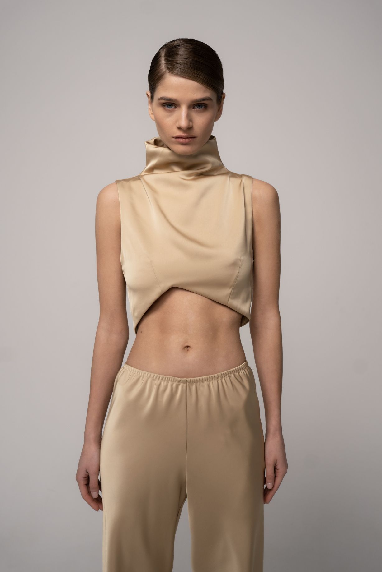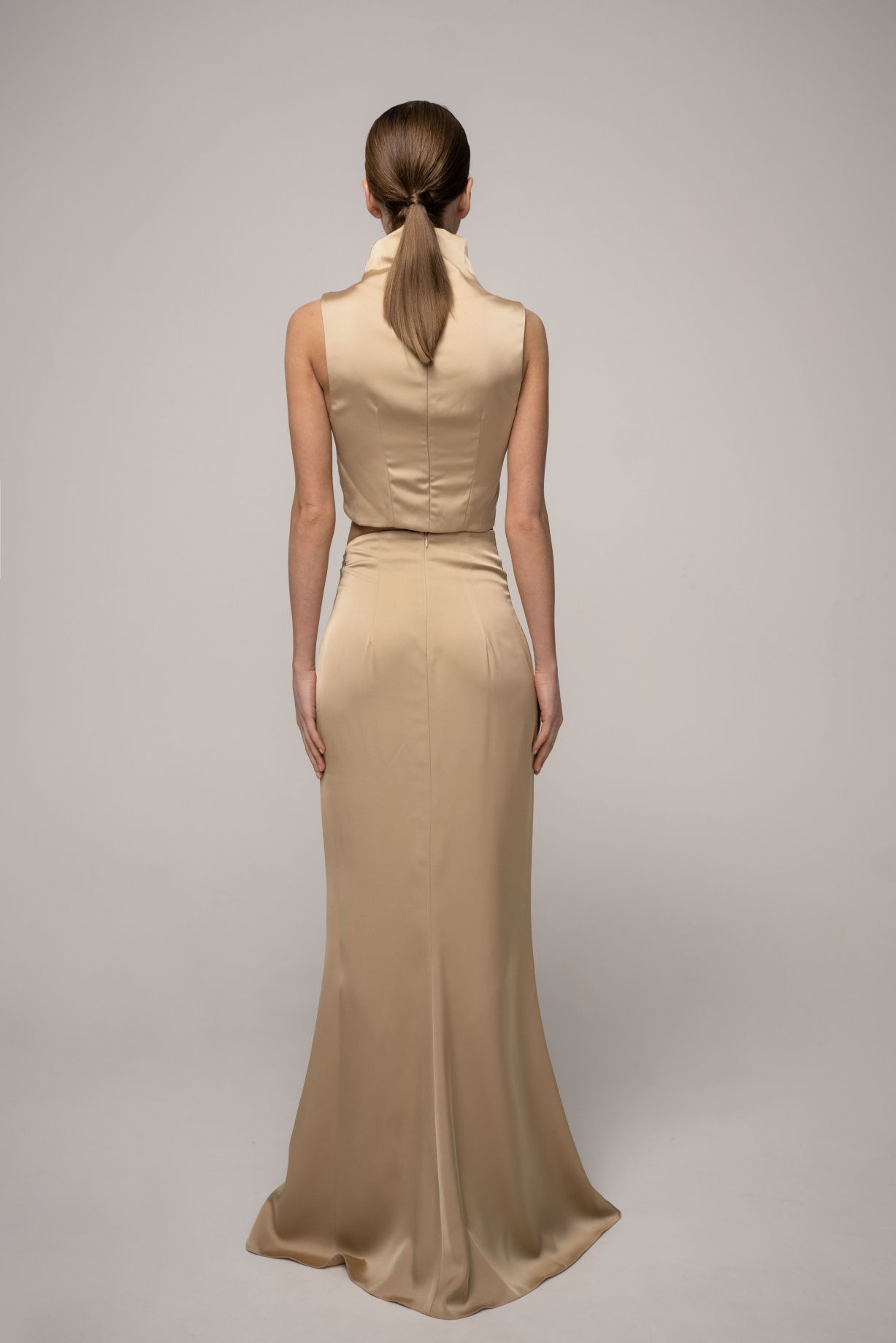 Silk adds shine and luxury, while viscose provides softness and drape, creating an elegant and sophisticated look. The high neck and asymmetrical cut emphasize the silhouette and give the look a unique and feminine touch. Has a zip fastening.Composition: 70% viscose, 30% silk