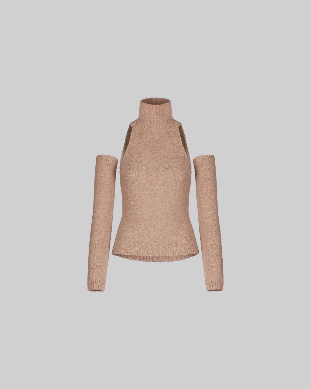 A fluffy sleeveless top with a high neck and mittens made of Italian knitwear will be a stylish and cozy addition to your wardrobe. Made of high-quality material, it provides softness, drape and durability. Viscose gives the top softness and comfort, and elastane adds strength and elasticity.Composition: 95% Viscose, 5% Elastane