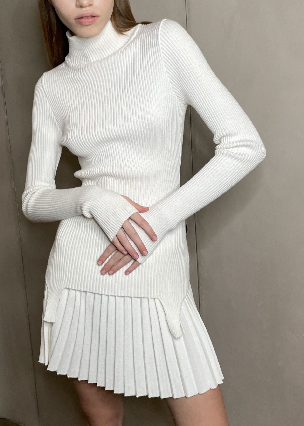 Ribbed turtleneck sweater with decorative details in the form of "garters", made of soft knitwear with the addition of Australian merino wool.Composition: 80% viscose, 20% wool