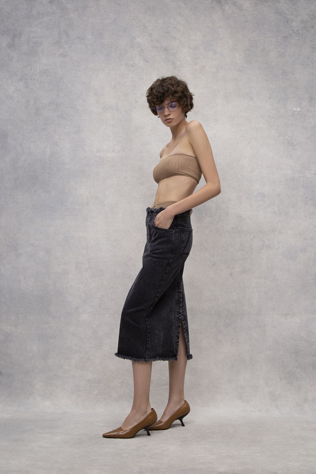 Denim midi-length skirt with classic cut.Composition: 100% Cotton