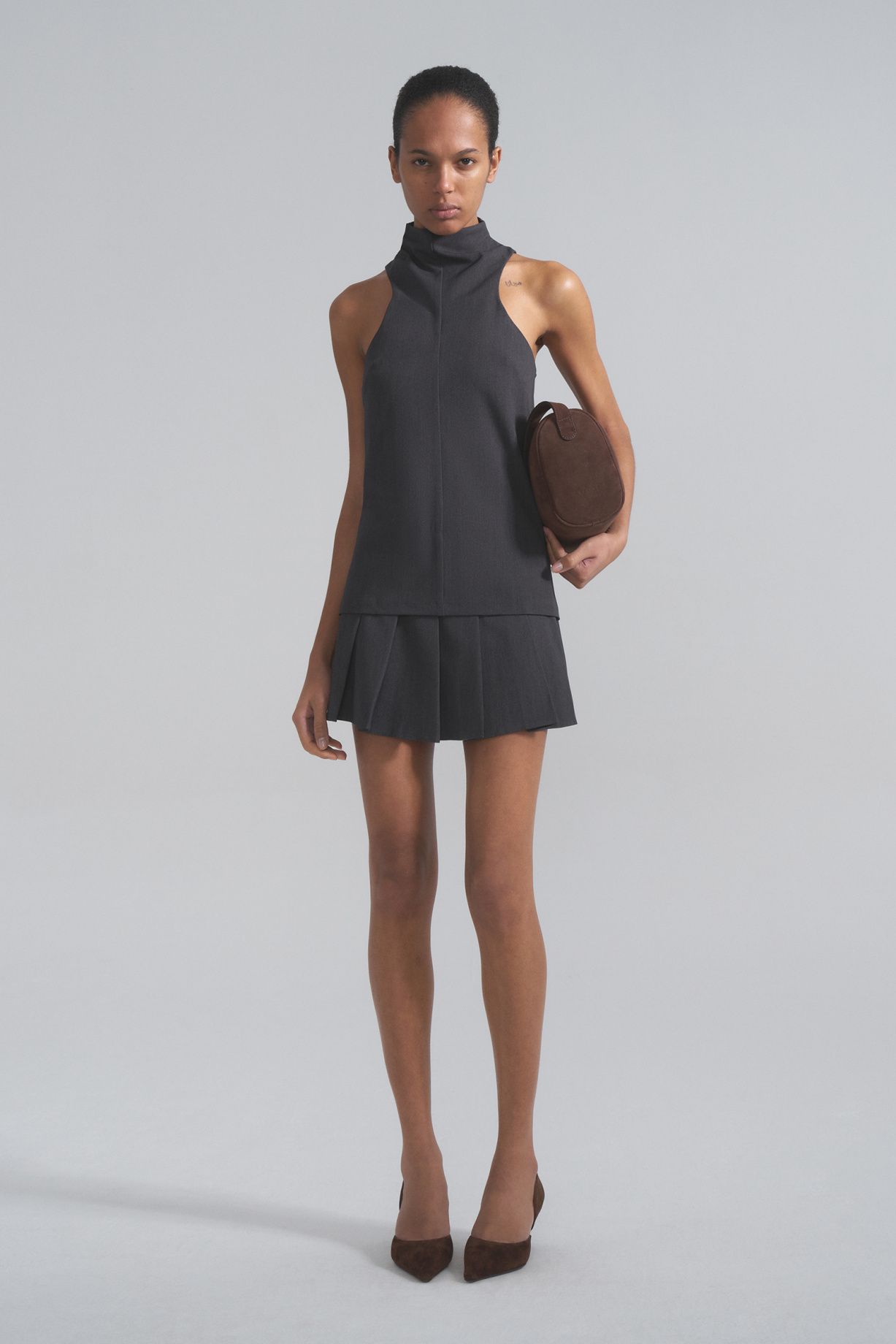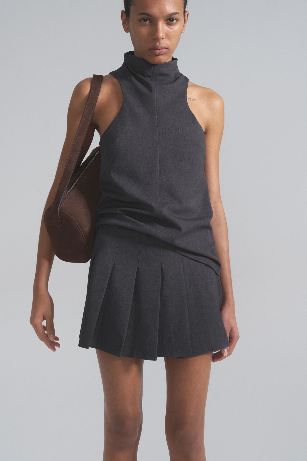 A pleated skirt with a medium fit.Composition: 64% Tencel, 32% Viscose, 4% Spandex