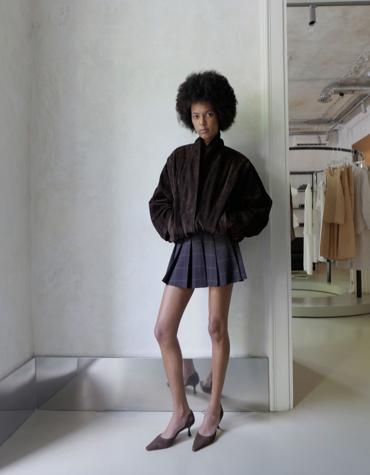 A pleated skirt with a medium fit.Composition: 64% Tencel, 32% Viscose, 4% Spandex