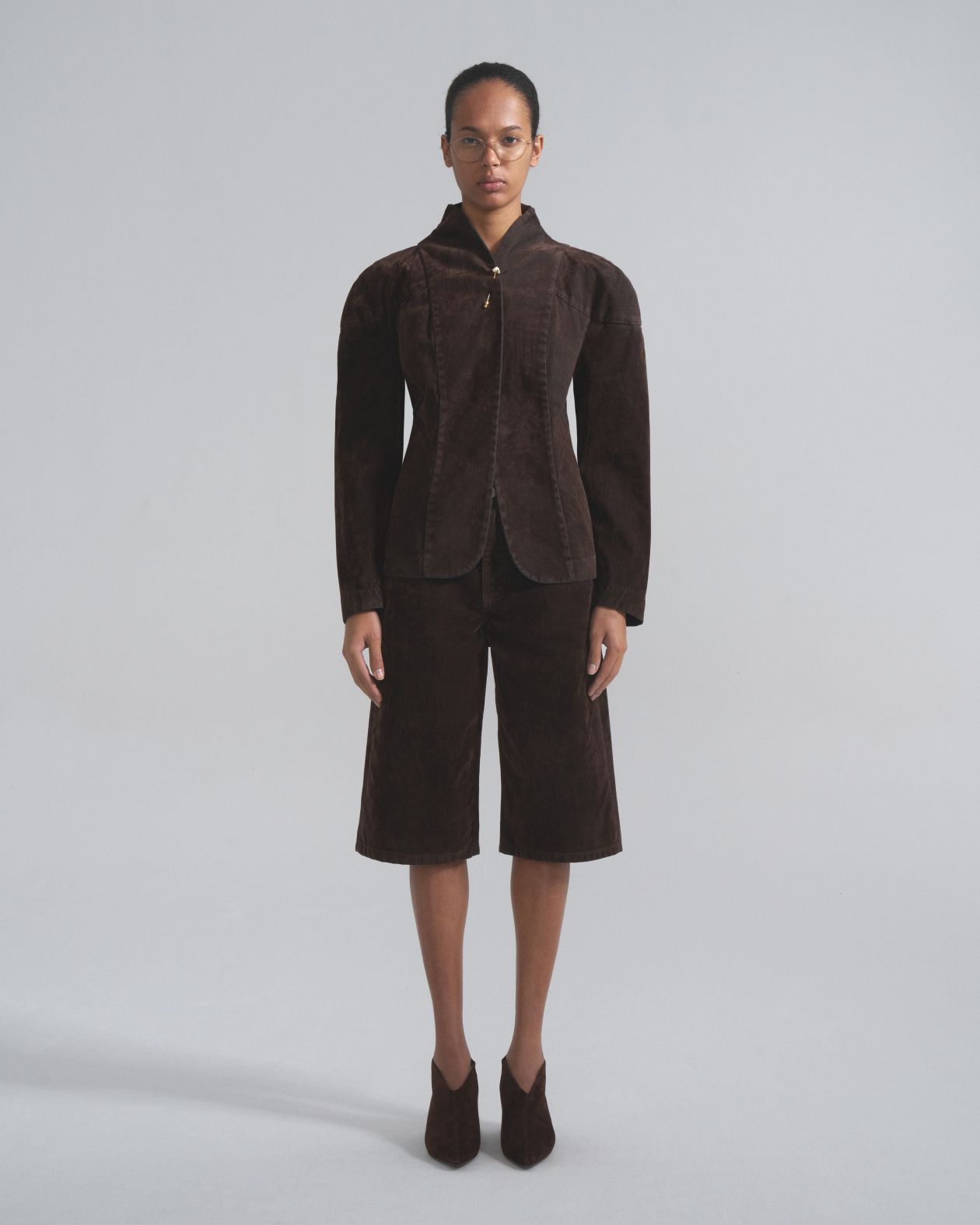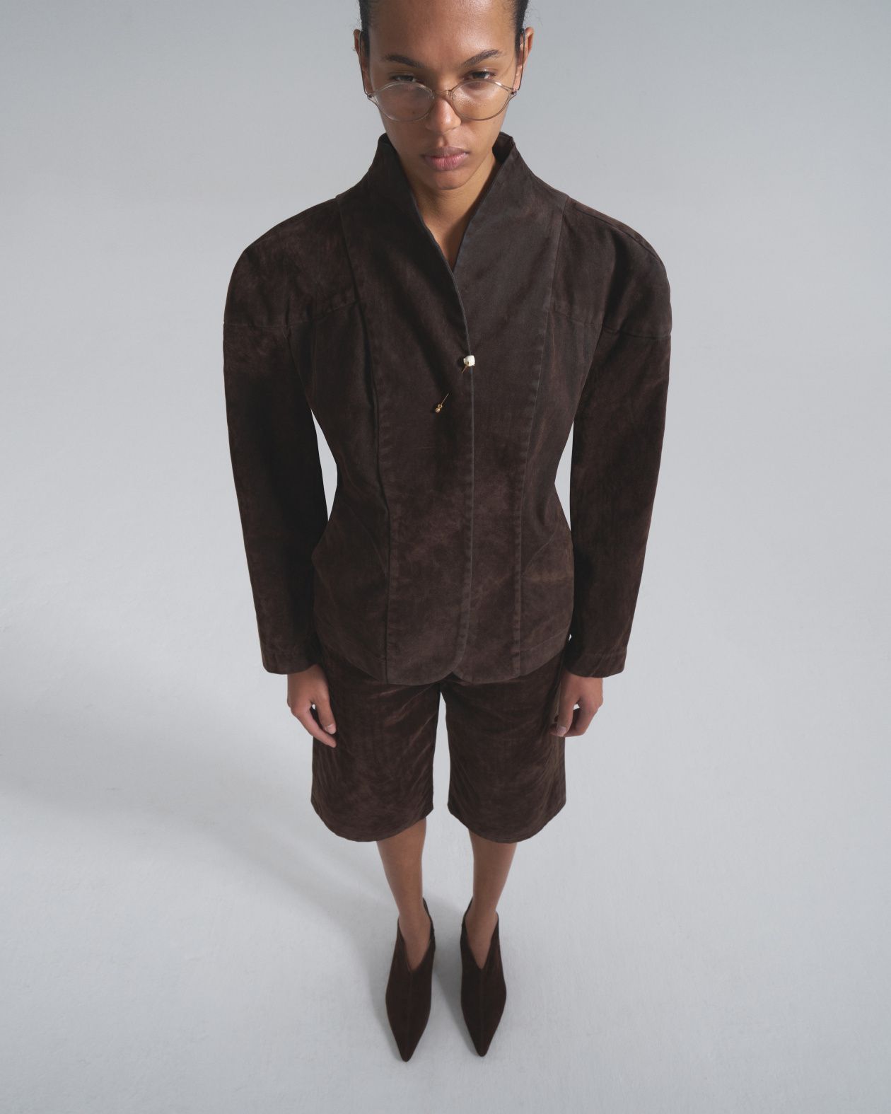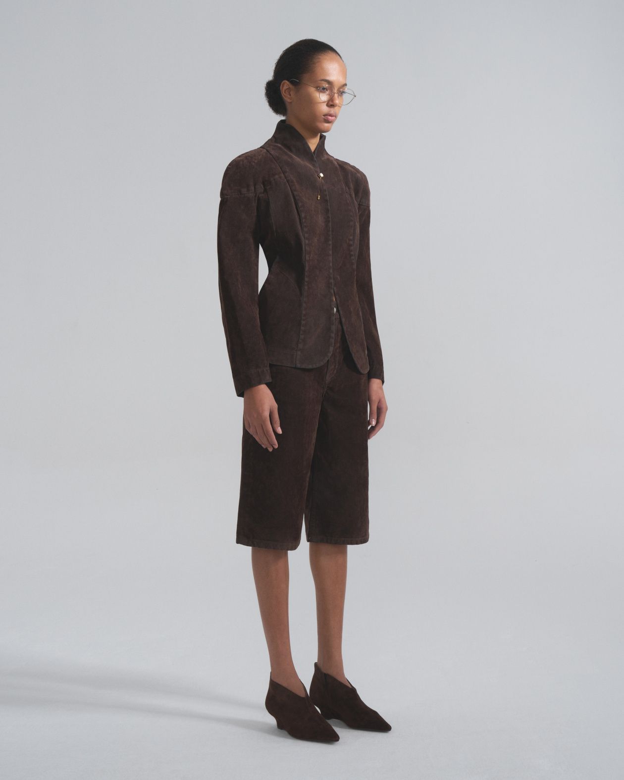 Fitted jacket with a loose fit with accent reliefs and a stand-up collar. It is made of thick boiled jeans.Composition: 100% cotton