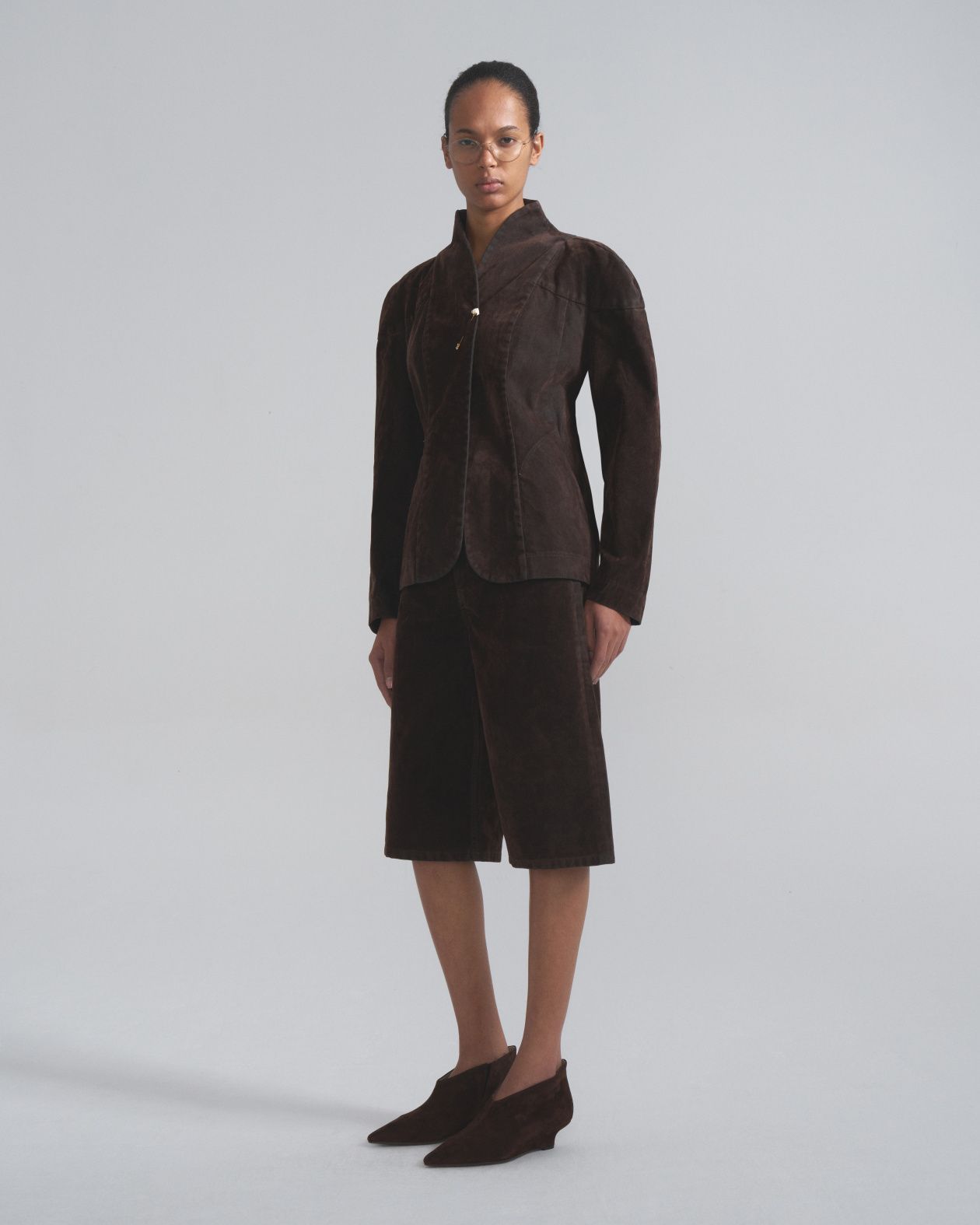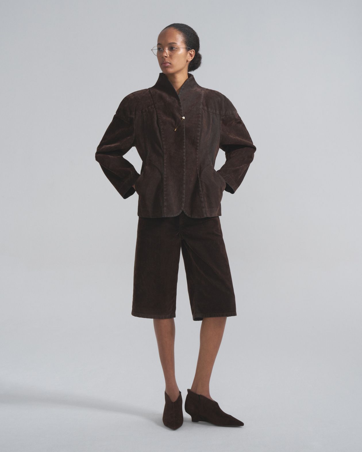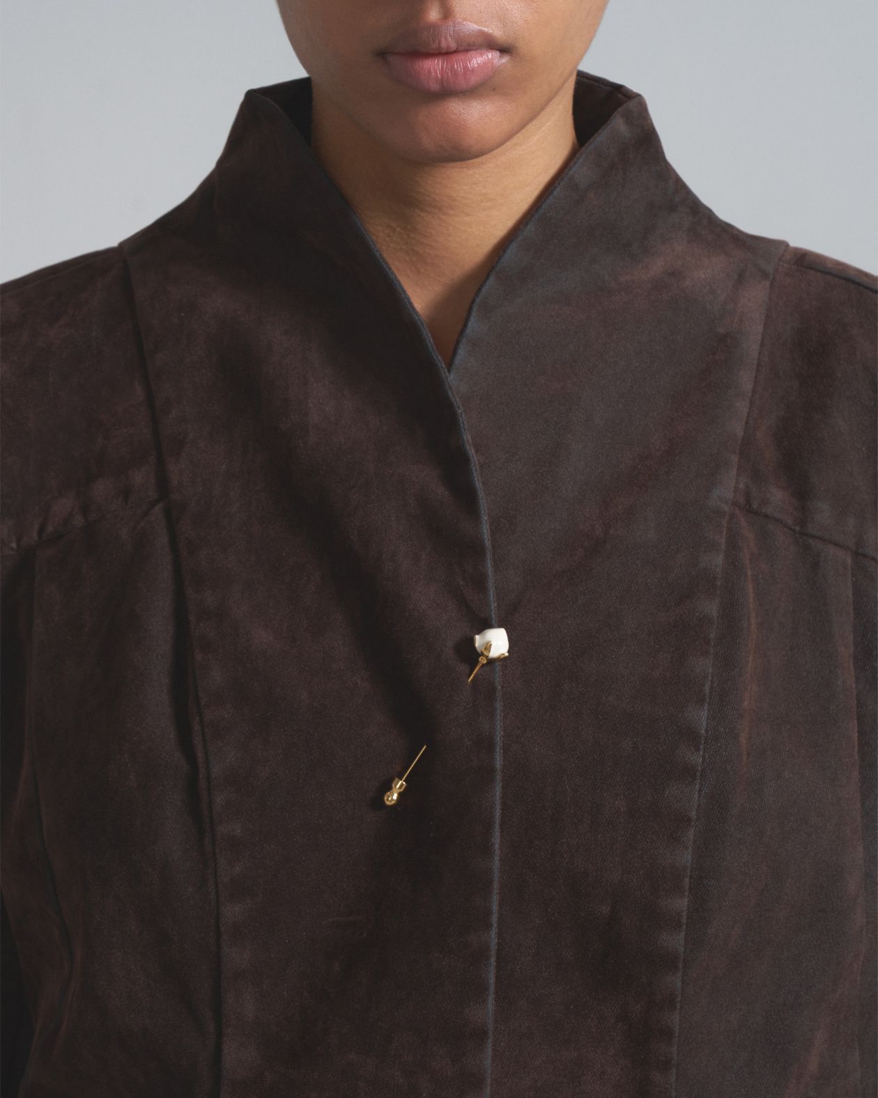 Fitted jacket with a loose fit with accent reliefs and a stand-up collar. It is made of thick boiled jeans.Composition: 100% cotton